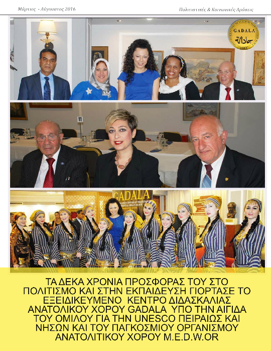 ΤΑ ΔΕΚΑ ΧΡΟΝΙΑ ΠΡΟΣΦΟΡΑΣ ΤΟΥ ΣΤΟ ΠΟΛΙΤΙΣΜΟ & ΣΤΗΝ ΕΚΠΑΙΔΕΥΣΗ ΓΙΟΡΤΑΣΕ ΤΟ ΕΞΕΙΔΙΚΕΥΜΕΝΟ ΚΕΝΤΡΟ ΔΙΔΑΣΚΑΛΙΑΣ ΑΝΑΤΟΛΙΚΟΥ ΧΟΡΟΥ GADALA ΥΠΟ ΤΗΝ ΑΙΓΙΔΑ ΤΟΥ ΟΜΙΛΟΥ ΓΙΑ ΤΗΝ UNESCO ΠΕΙΡΑΙΩΣ & ΝΗΣΩΝ