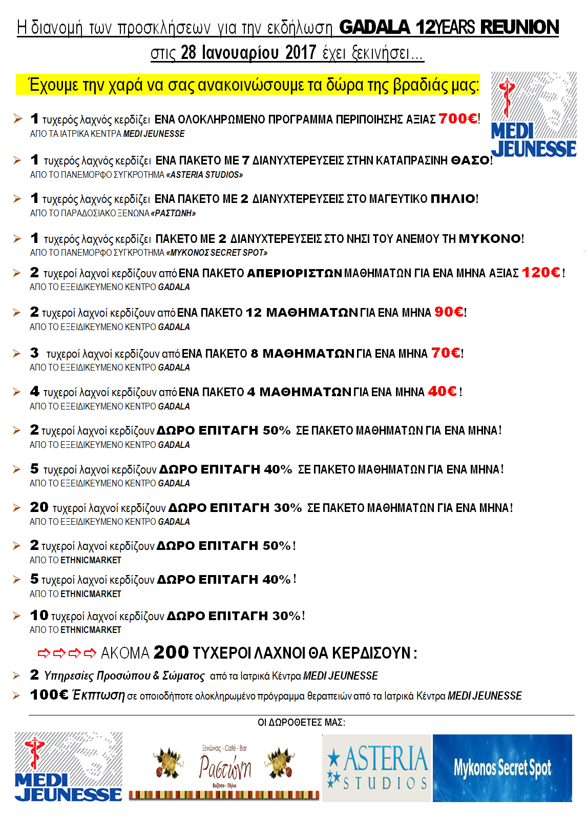 Τα Πρότυπα Ιατρικά Κέντρα MEDI JEUNESSE προσφέρουν εντελώς ΔΩΡΕΑΝ σε 200 λαχνούς της εκδήλωσής μας: