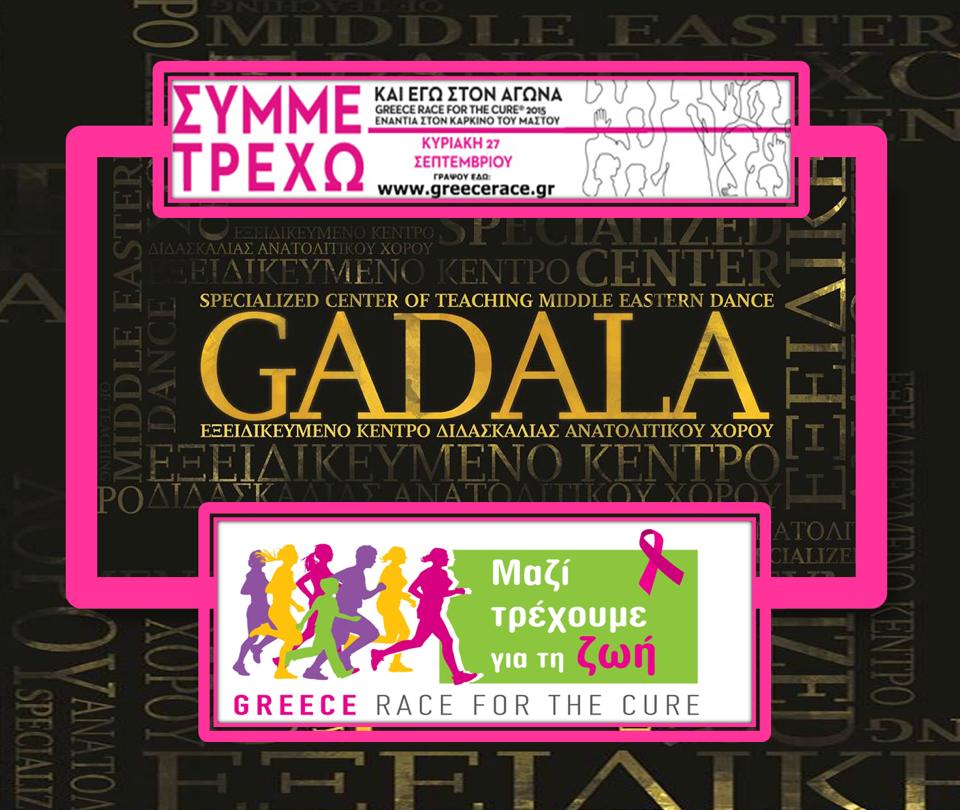 Το Εξειδικευμένο Κέντρο Διδασκαλίας Ανατολίτικου Χορού GADALA στα πλαίσια της ευαισθητοποίησης γύρω από τις συχνότερες δυσκολίες που συναντούν σήμερα οι γυναίκες, και ειδικότερα την αντιμετώπιση του καρκίνου και με στόχο την ανοιχτή εμπεριστατωμένη πληροφόρηση του ευρύτερου κοινού γύρω από την ευεργετική επίδραση του ανατολίτικου χορού (Οριεντάλ) στην αντιμετώπιση του καρκίνου, συμμετέχει με την Ομάδα «GADALA Εξειδικευμένο Κέντρο Διδασκαλίας Ανατολίτικου Χορού» στον 7ο Αγώνα Greece Race for the Cure® 2015.