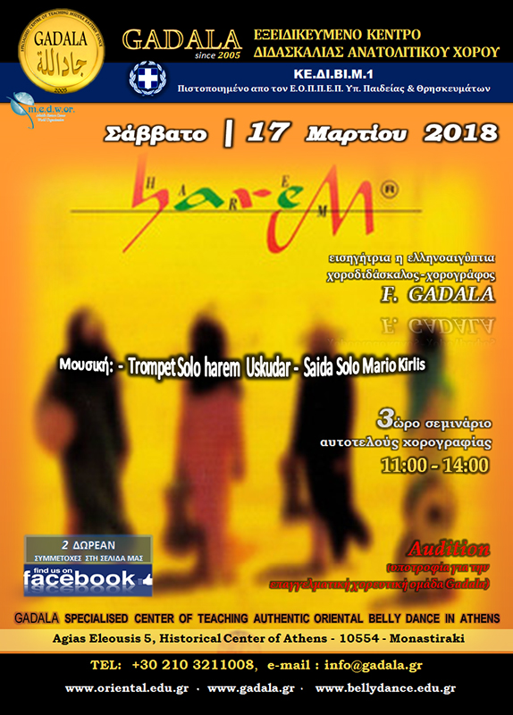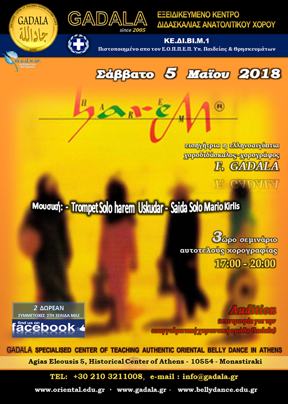 3ωρο Σεμινάριο Αυτοτελούς Χορογραφίας Αυθεντικού Oriental Bellydance Χορού με την Μέθοδο GADALA