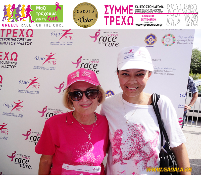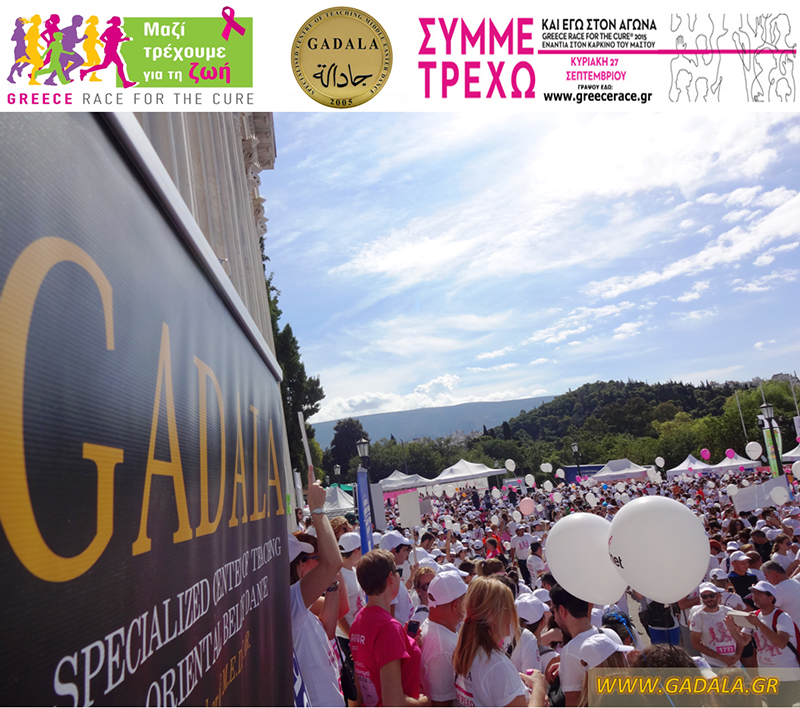 Στα πλαίσια αυτής της ευαισθητοποίησης γύρω από τις συχνότερες δυσκολίες που συναντούν σήμερα οι γυναίκες και ειδικότερα την αντιμετώπιση του καρκίνου, το Εξειδικευμένο Κέντρο Διδασκαλίας Ανατολίτικου Χορού GADALA πήρε μέρος με σύσσωμη όλη την Oriental Ομάδα «GADALA Εξειδικευμένο Κέντρο Διδασκαλίας Ανατολίτικου Χορού», η οποία συμπεριλάμβανε μαθήτριες, σπουδάστριες, χορευτές και χορεύτριες bellydance, δασκάλες, με αρχηγό δασκάλα την κα Φωτεινή Gadala στον φιλανθρωπικό Αγώνα Δρόμου «Greece Race For The Cure 2015».