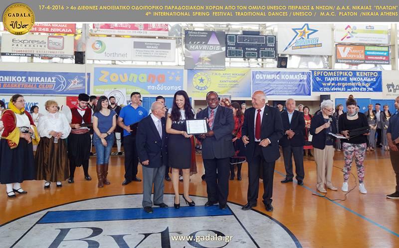 «Θέλω να ευχαριστήσω θερμά τον Πρόεδρο του Ομίλου για την UNESCO Πειραιώς και Νήσων και Μέλος του Εκτελεστικού Συμβουλίου της Παγκόσμιας Ομοσπονδίας Ομίλων, Συλλογών και Κέντρων UNESCO (WFUCA) για την Ευρώπη και τη Βόρεια Αμερική, κο Ιωάννη Μαρωνίτη, για την αναγνώριση της συμβολής του Εξειδικευμένου Κέντρου Διδασκαλίας Ανατολίτικου Χορού GADALA στην διάσωση του αιγυπτιακού πολιτισμού και να τον συγχαρώ για την άψογη διοργάνωση άλλης μία Μεγάλης Γιορτής Πολιτισμού.