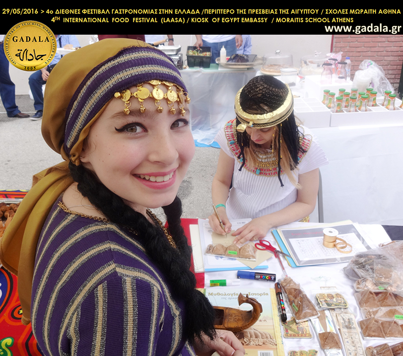 Η κα Φωτεινή Gadala εκπροσώπησε για 3η συνεχόμενη χρονιά την πρεσβεία της Αιγύπτου μαζί με την Επαγγελματική Ομάδα Παραδοσιακού Αιγυπτιακού Χορού του Εξειδικευμένου Κέντρου Διδασκαλίας Ανατολίτικου Χορού GADALA στο 4ο Διεθνές Φεστιβάλ Γαστρονομίας και λαϊκής τέχνης στην Ελλάδα υπό την διοργάνωση της LAASA.
