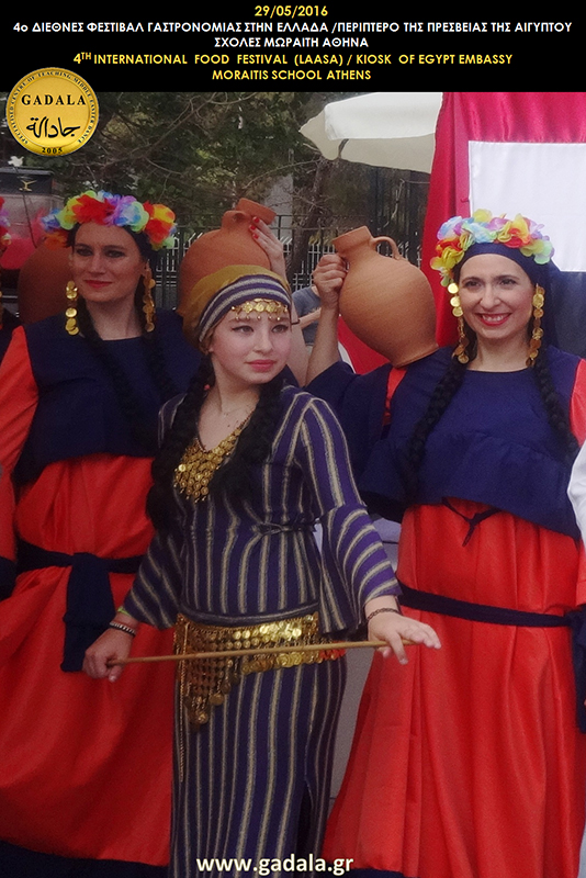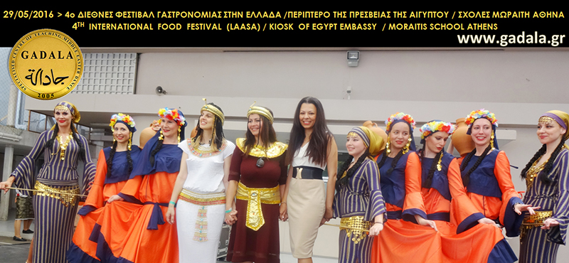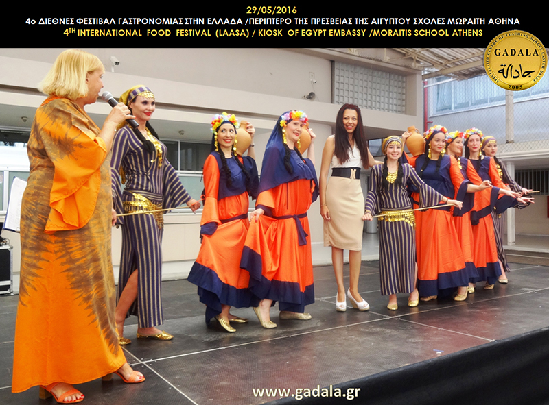 Η κα Φωτεινή Gadala μαζί με τις χορεύτριες από την επαγγελματική ομάδα παραδοσιακού αιγυπτιακού χορού GADALA εκπροσώπησε την πρεσβεία της Αιγύπτου στο 4ο Διεθνές Φεστιβάλ Γαστρονομίας στην Ελλάδα υπό την διοργάνωση της LAASA