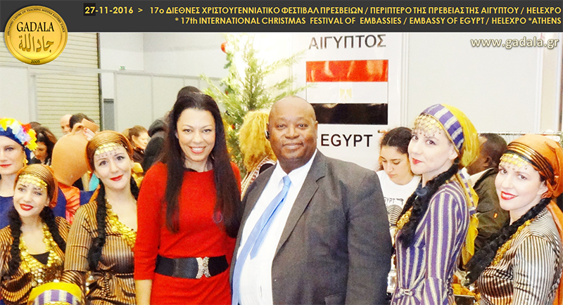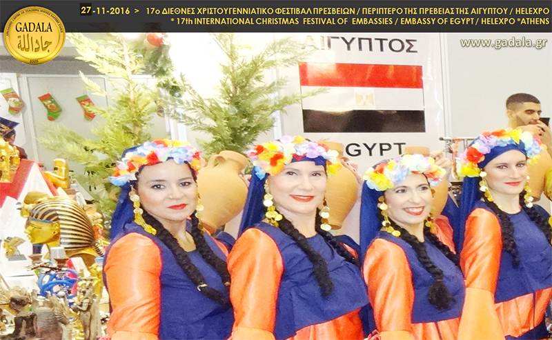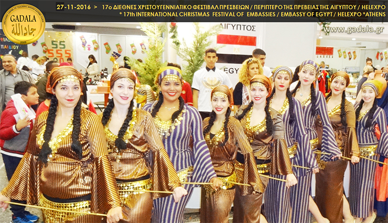 Η κα Φωτεινή Gadala εκπροσώπησε για 3η συνεχόμενη χρονιά την πρεσβεία της Αιγύπτου μαζί με την Επαγγελματική Ομάδα Παραδοσιακού Αιγυπτιακού Χορού του Εξειδικευμένου Κέντρου Διδασκαλίας Ανατολίτικου Χορού GADALA στο 17ο Διεθνές Χριστουγεννιάτικο Φεστιβάλ στην Ελλάδα.